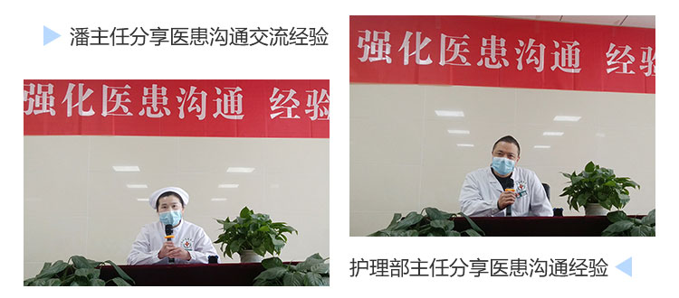 王院长强调,医患关系是医院人际关系的基础,其好坏直接影响医疗质量和满意度,加强医患沟通是深化“以病人为中心,以质量为核心”的服务理念和构建和谐医患关系的重要举措。通过举办医患沟通技巧交流会,主要针对的是日常工作中存在的工作不到位、沟通不到位的实际问题,找差距、补短板,进一步转变工作作风、促进临床工作的提升。希望大家从思想上,要认识到位,从行动上要知行合一,落实改进工作作风、提高技术水平、增强临床疗效的总目标。全力打造一支医术精湛、为民务实、品德高尚、作风优良的、优秀的医疗队伍。